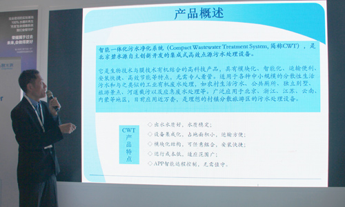 碧水源研發中心副主任、高級工程師劉德祥,研發中心首席專家、教授級高工李鎖定,研發中心超微濾膜研發室主任代攀,研發中心工藝研發室主任李天玉,研發中心產品開發部經理劉明軒等參加了此次發布會,其中,李鎖定教授更是為展會現場的觀眾們詳細解說了碧水源重點發布的第二代智能一體化污水凈化設備(CWT)。 CWT是村鎮污水處理的革命性產品,是針對鄉村污水治理難點的創新性解決方案。