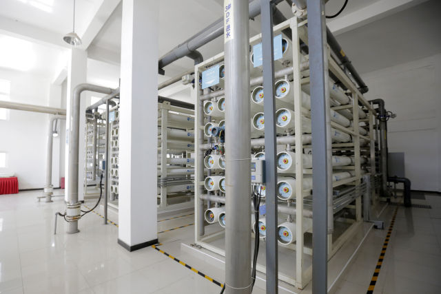 4月23日拍攝的碧水源位于北京翠湖新水源廠的超低壓選擇性納濾膜設備。(新華社發)