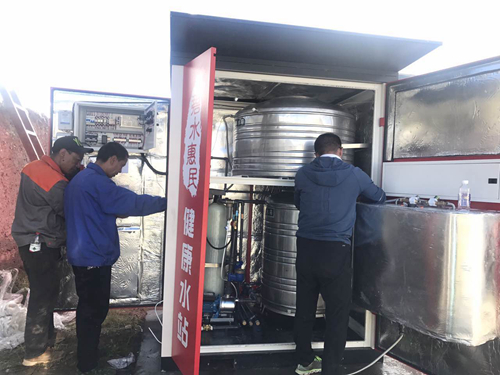 飲用水安全關系人民群眾身體健康和生命安全。自治區黨委網信辦駐西嘎村第六批工作隊入駐以后,通過大量走訪調研,發現村民飲用水由于主要來自于雪山融水,受特殊地理環境的影響,每逢雨季大量泥沙流攜帶牲畜糞便等污染物混入,致使飲用水被污染,嚴重影響農牧民群眾的飲水安全。為切實幫助西嘎村村民解決這一困擾多年的飲水安全問題,駐村工作隊主動作為、積極奔走,得到國內環保行業企業碧水源公司的高度重視和大力支持。在實地考察西嘎村水源及管網情況后,2017年8月,一套為高原環境量身定制、經過特殊改裝的碧水惠民水站設備越過千山萬水,運抵海拔4270米的西嘎村。安裝人員經過三天艱苦奮戰,克服吊裝設備短缺、電壓不穩、管路改造等諸多困難,終于在8月24日安裝完碧水源惠民水站,為西嘎村村民們送上期盼已久的“健康水”。