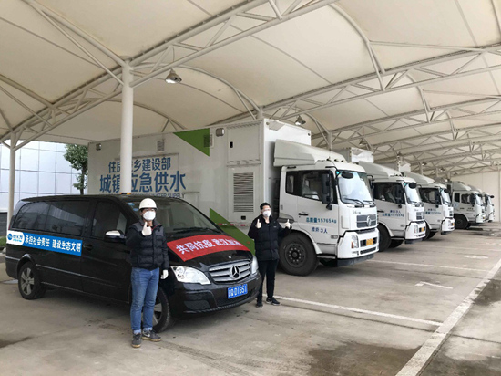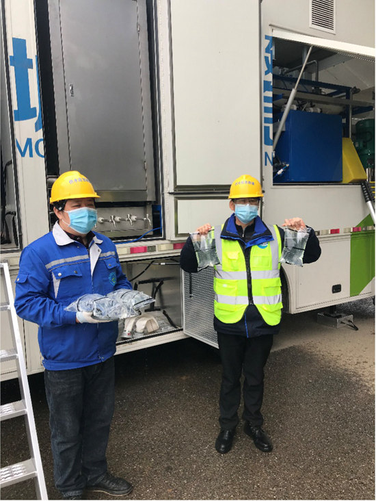 華中基地負責單位武漢水務集團擁有武漢11座自來水廠,供水服務面積涵蓋武漢市主要城區及部分遠郊城區,在疫情期間還承擔著包括火神山、雷神山醫院在內的141家醫療救治定點供水保障。為做好水源突發事件的應急工作,確保用水安全,華中基地急電碧水源協助提供應急供水車的技術支持。碧水源義不容辭,立即派出膜產品、電氣自控、膜工藝相關的專業工程師隊伍,驅車1300余公里趕赴武漢,僅用3天時間,完成了全部應急供水車的調試任務,隨時可投入使用。