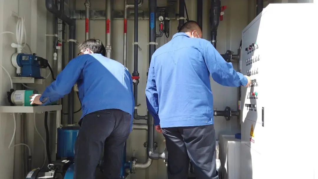 日前,一套由碧水源自主研發的智能一體化污水凈化設備運抵密云區方艙醫院,密云項目公司的工作人員立即安裝進出水管路、消毒加藥設備及管路、相關儀表等設備,目前進入現場調試階段。